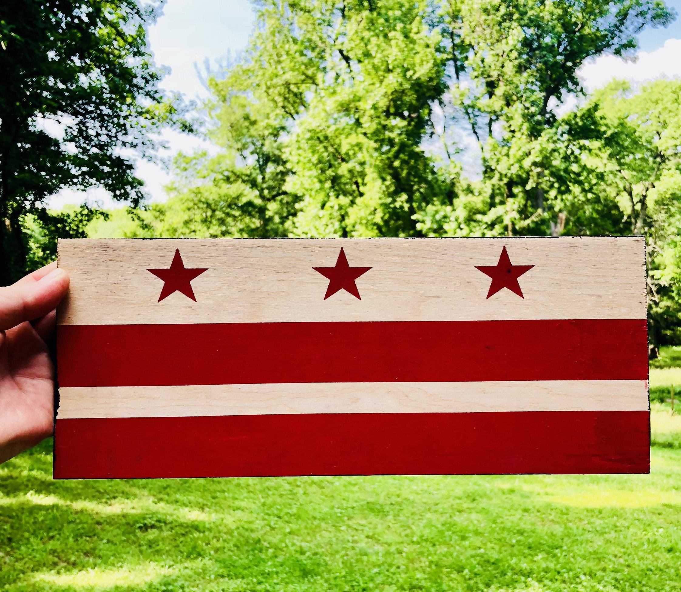 Handprinted on wood. Ready to hang at approximately 6x14 inches.