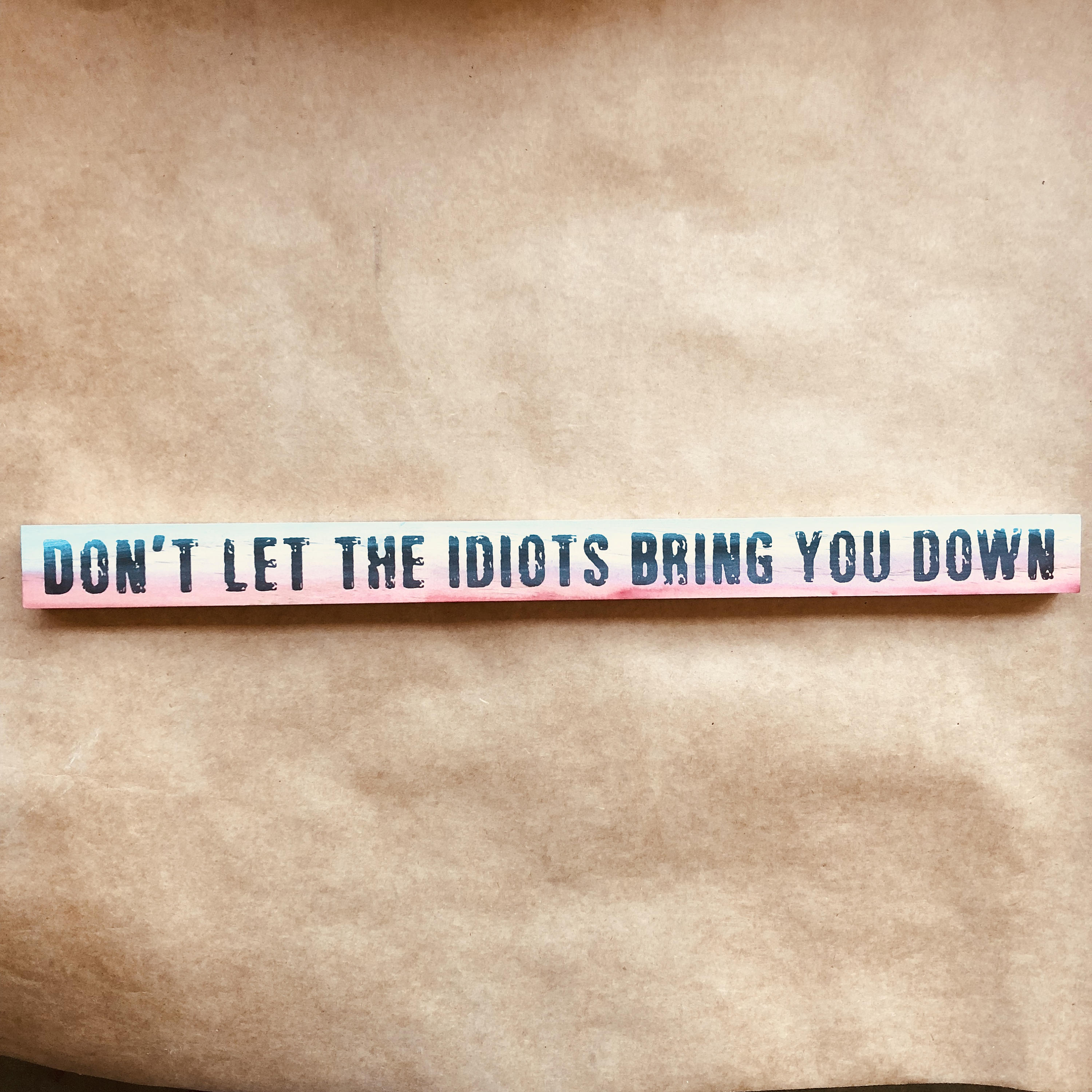 Silkscreened and handpainted on wood. Ready to hang or lean at 1.5x20 inches.